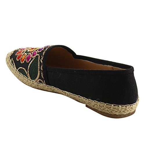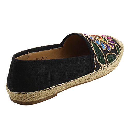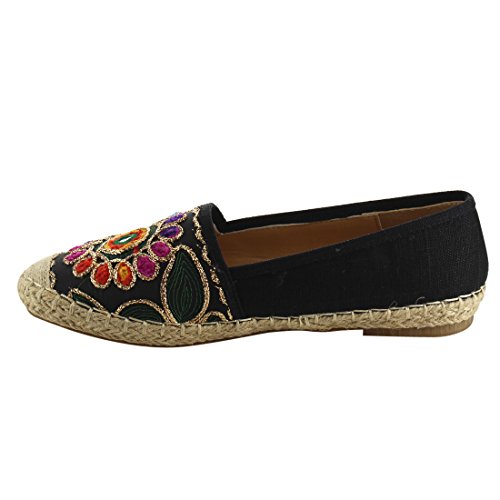 Why Choose REFRESH IE90 Women's Cap Toe Espadrille Floral Stitched Flats,8.5 B(M) US,Black?