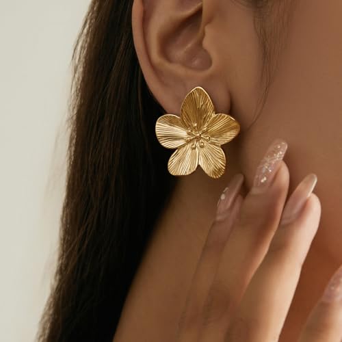 Gold Flower Earrings for Women Dangling Big Statement Earrings for Women Large Floral Stud Earring Daisy Spring Summer Fancy Earring Chunky Flower Gold Jewelry