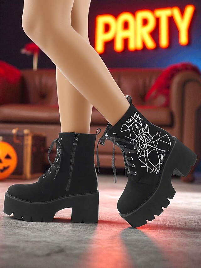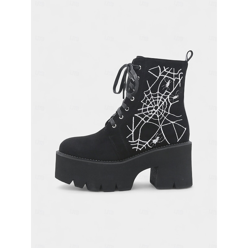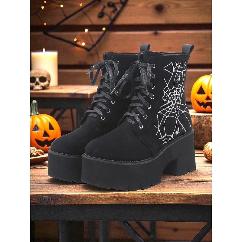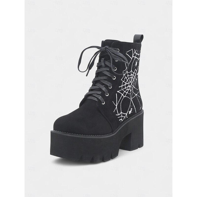$59.99 - Women's Black Platform Combat Boots with Spider Web Embroidery - Gothic Lace-Up Chunky Heel Ankle Boots for Halloween Party, Cosplay and Night Out 2025. Shop for cheap Shoes For Women online? Buy at lightinthebox.com on sale today!