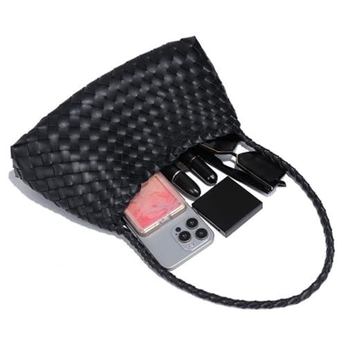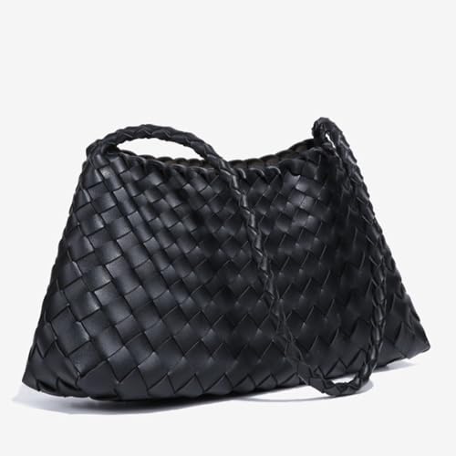 Rejolly Basket Woven Bag for Women Leather Shoulder Handbag Summer Vacation Chic Beach Tote Purse with Drawstring Pouch