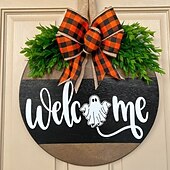$15.49 - Halloween Wooden Welcome Sign for Front Door Hanging Spooky Ghost, White Ghost Wall Decor Plaque, Rustic Wooden Halloween Door Sign for Home Party Decoration 2025. Shop for cheap Halloween Wreaths & Floral Decorations online? Buy at lightinthebox.com on sale today!