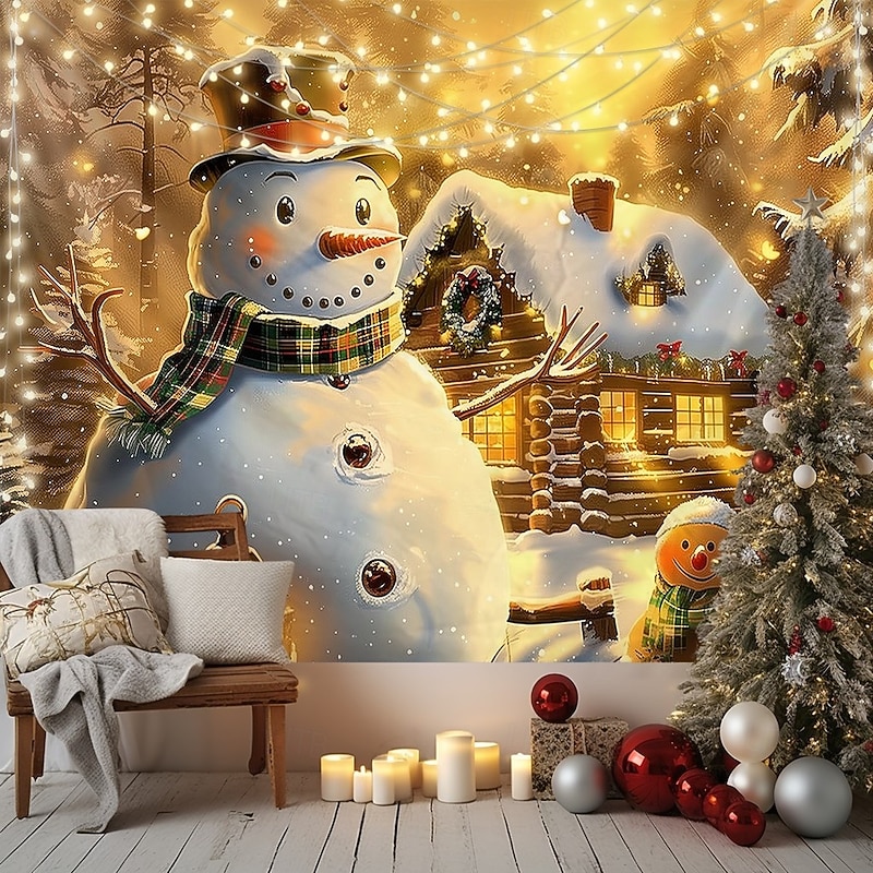 $14.49 - Christmas Wall Tapestry Backdrop, Golden Glowing Snowman Family with Lights and Tree, 2025 Xmas Winter Wonderland Holiday Wall Hanging for Bedroom Living Room 2025. Shop for cheap Christmas Tapestry Hanging online? Buy at lightinthebox.com on sale today!