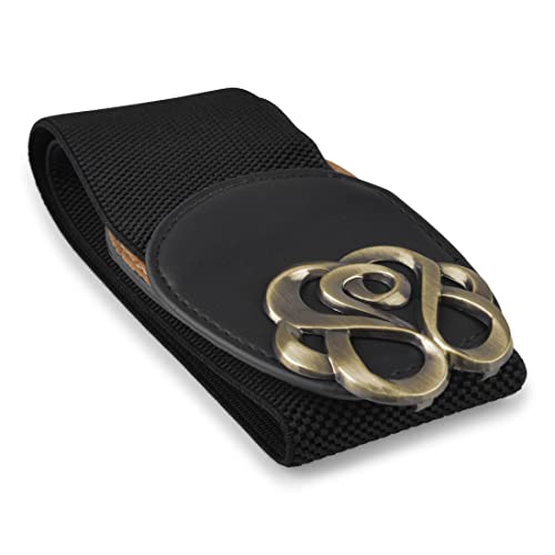 Fabric type: ElasticCare instructions: Dry Cloth CleanVintage Inspired - Add a unique vintage inspired flare to your outfit with this retro styled belt. Dress up any outfit.Durable Interlocking Buckle - This belt is securely fastened with a clever two hook design making it easy to wear or remove on any outfit. The belt design will look seamless when worn.Stretchy Elastic - The belt strap is made from a soft but strong elastic allowing the belt to stretch comfortably into different wearing positions around your waist.Faux Leather Finish - The metallic buckle design sits on a elegant soft faux leather pad adding extra sophistication to the belt.All Occasions and Seasons - Perfect for all year round for parties, date nights, work, graduation, weddings, birthdays, church, holidays, ceremonies and much more. Perfect for everyday use. finest materials and excellent craftsmanship ensure long-lasting durability.