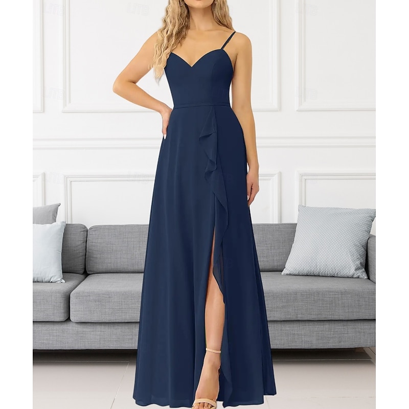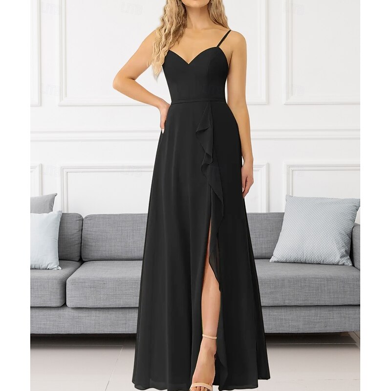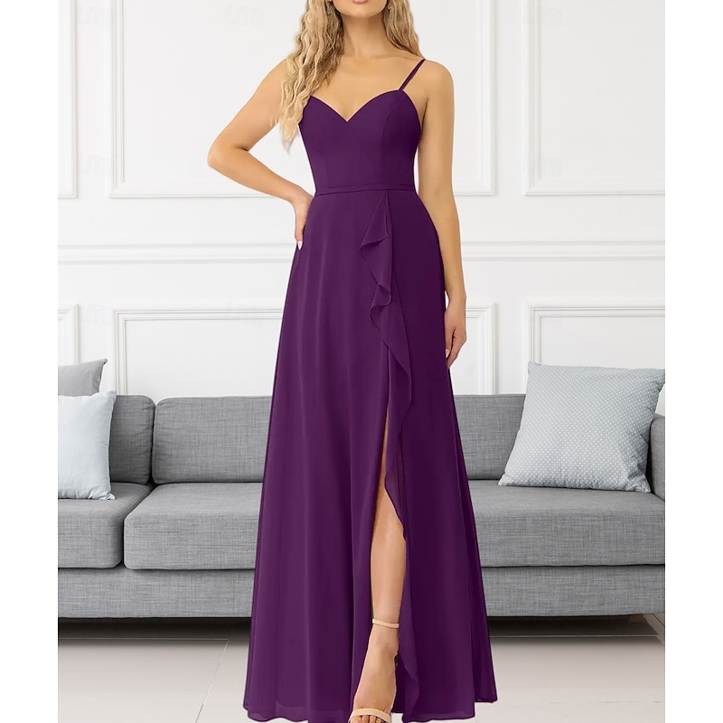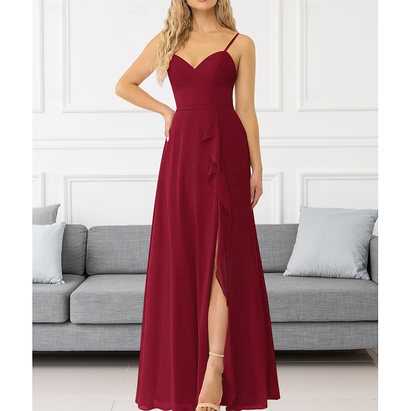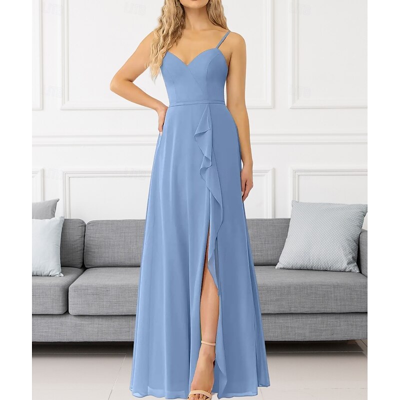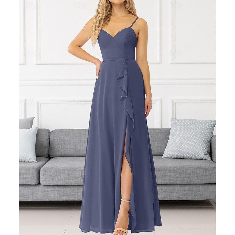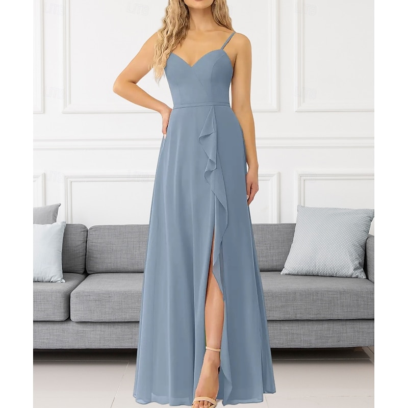This A-Line Bridesmaid Dress V Neck / Spaghetti Strap Sleeveless Elegant Floor Length Chiffon with Ruffles / Split Front / Ruching 2022 combines elegant design with practical functionality. Every detail has been carefully considered to ensure you get the best possible experience. The remarkable construction means this product will serve you well for years to come.