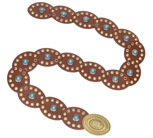 Western-Wide-Disc-Belt for Women Cowgirl Hollow Belt Vintage Boho Oval Waist Belts for Jeans Dresses