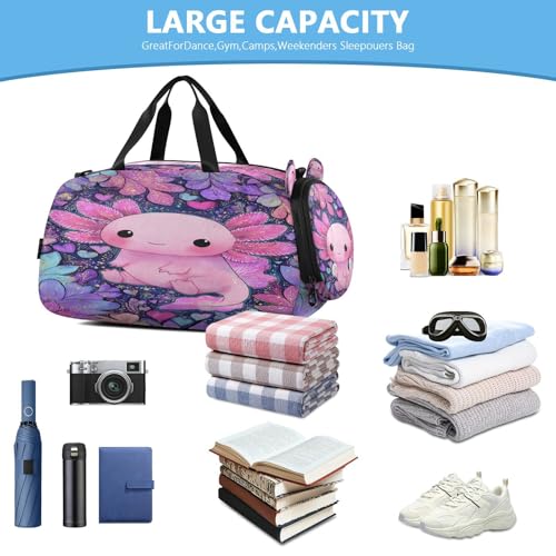 Gym Travel Duffle Bag for Boys Girls Salamander Leaves Sports Dance Bag with Shoe Compartment & Wet Pocket Football Kids Travel Bag Teens Sleepover Carry