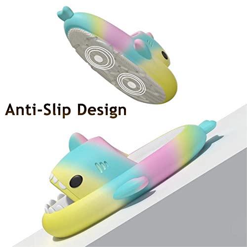 Shark Slides Unisex, Cute Rainbow Shark Slides Adult, newly-released Shark Slides Upgraded Thick Bouncy Cushion Cloud Shark Slides
