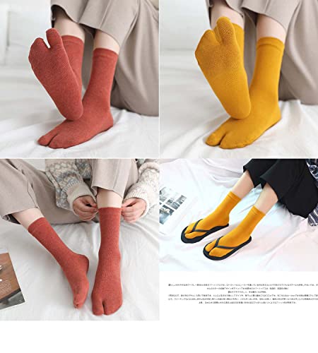 Pursuestar 3 Pairs Women Girl Cotton Sports Casual Sandal Split Two Toe Japanese Tabi Flip Flops Socks Elastic on the house Size