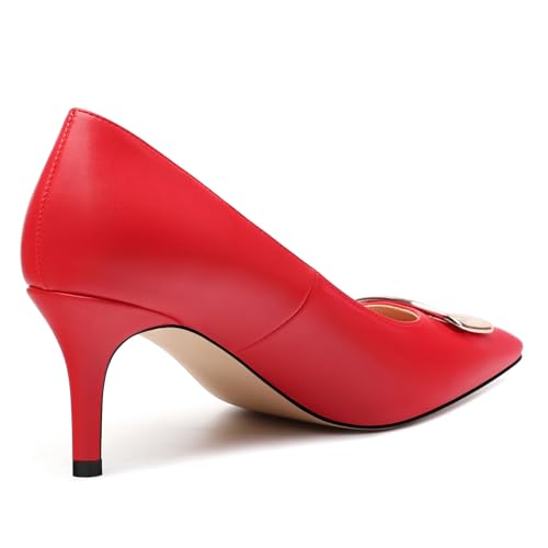 must-have ! Women's Pumps Pointed Toe Mid Stiletto Heels Rectangular Metal Buckle Pumps Dress Party Shoes