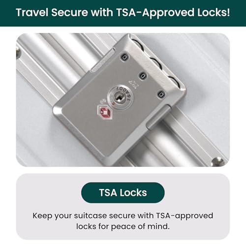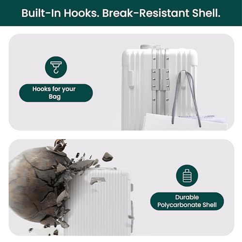 Aluminum Frame & Polycarbonate Shell: Designed with a reinforced aluminum frame and durable polycarbonate shell, this hard side luggage offers superior protection while remaining lightweight at just 15.3 lb. The zipperless design provides a up-to-date, sleek, and secure travel experience.Spacious Interior with Smart Organization: Measuring 30.2” x 20” x 12”, this large check-in suitcase boasts a 90 L capacity with a wet pocket, mesh pocket, Y-strap, and a built-in compression system, keeping your belongings neatly packed and secure throughout your trip.Effortless Mobility: Equipped with multi-directional 360-degree spinner wheels, this large suitcase glides smoothly across any surface. The 4-level adjustable telescoping handle with a slow-release mechanism provides seamless control and comfort.Durable Bag Hooks for Effortless Travel: Ingeniously designed bag hooks act as secure anchors, letting you hang purses, carry-ons, or shopping bags with ease. Say goodbye to juggling extra bags—enjoy a hands-free, hassle-free airport experience with everything within reach.Dual TSA Locks for Maximum Security: Featuring TSA-approved dual locks, this zipperless check-in luggage ensures your valuables are secure while allowing smooth security checks. Built for heavy-duty travel, this large suitcase provides durability, protection, and peace of mind on every journey. Perfect for everyday use. finest materials and excellent craftsmanship ensure long-lasting durability.