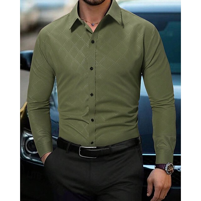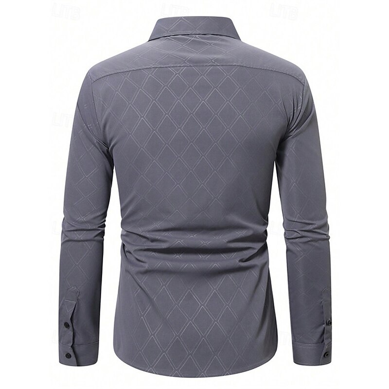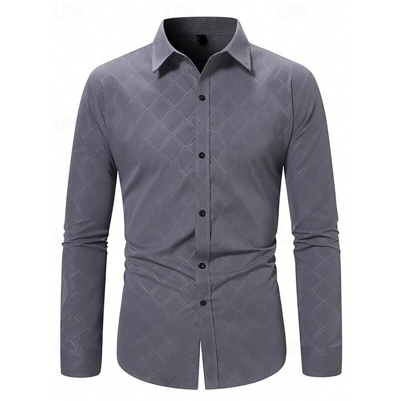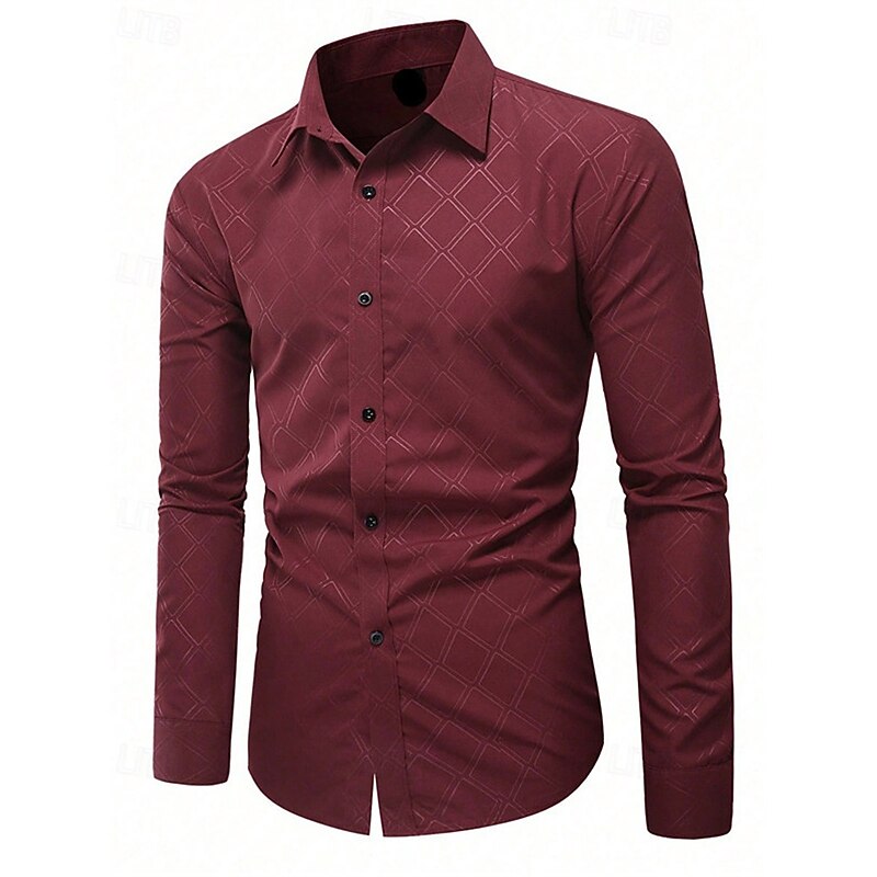 Highlights [Fabric] : This men's long-sleeve dress shirt is crafted from high-quality polyester, offering both durability and comfort. The fabric features a subtle plaid pattern that adds a sophisticated touch while maintaining a classic look. [Fit] : Designed with a casual yet comfortable silhouette, the shirt provides a modern fit that complements a variety of body types. The sleek form enhances a polished appearance, ideal for both professional and social settings. [Design Highlights] : This shirt features a classic lapel neckline and a button-up front adorned with contrasting black buttons, adding a chic accent to the overall design. The refined plaid pattern is woven intricately into the fabric, providing an elegant visual appeal. [Occasions] : Perfect for weddings, parties, daily wear, or casual outings, this shirt is versatile enough for work environments and back to office settings. Its adaptable style makes it suitable for various events and occasions throughout the spring and fall seasons. [Size Range] : Available in a range of sizes from S to XL, this shirt offers options to accommodate different body shapes and personal style preferences. Perfect for everyday use. supreme materials and excellent craftsmanship ensure long-lasting durability.