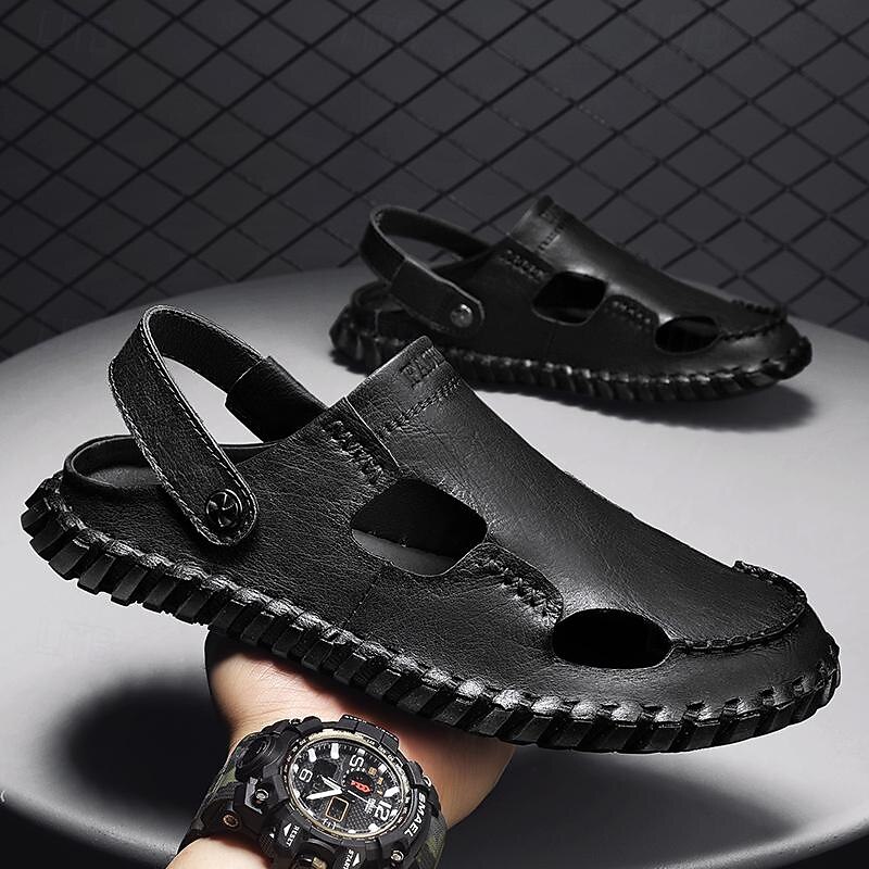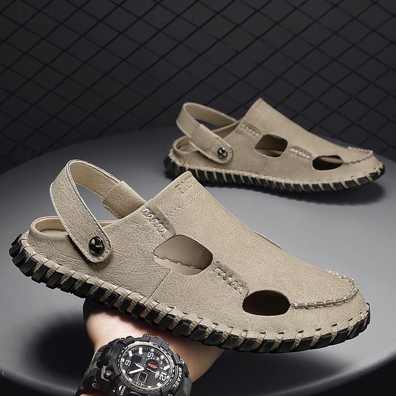 More information about Men's Leather Sandals Flat Sandals Fashion Sandals Handmade Shoes Outdoor Slippers Walking Casual Beach Daily Office & Career Breathable relaxing Loafer Red Brown Black Khaki