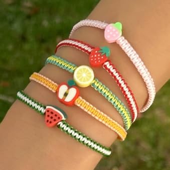 Item display length: 10 centimetersMaterial: NylonMetal type: ZincGem type: No gemstoneItem type name: Bracelets1. **Premium Quality & Safe Materials**: Crafted with hypoallergenic, lead-free beads and durable cord, ensuring comfort and safety for all skin types.2. **Charming Design Inspiration**: Drawn from the vibrant hues of summer fruits, each bracelet features a unique fruit charm that captures the essence of sunny days, making it a perfect conversation starter.3. **Versatile & chic Appeal**: The multicolor beaded design adds a playful, yet sophisticated touch to any outfit. Itβs the ideal accessory for festivals, vacations, or everyday wear, reflecting your lively and fun-loving personality.4. **Special Gift **: Share the fruity fun with your best friend or significant other! The adjustable size making it a thoughtful and personalized gift that symbolizes friendship and connection.5. **Service**: We devoted to be a satified servicer for every customer, we supply popular jewelry according to current trend. Please feel free to contact with us if you have any questions. Perfect for everyday use. supreme materials and excellent craftsmanship ensure long-lasting durability.