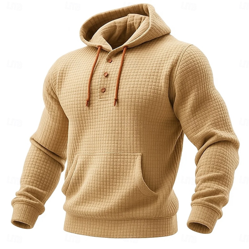 This Men's Hoodie Waffle Hoodies Pullover Hoodie Sweatshirt Navy Blue Khaki Light Grey Dark Gray Hooded Henley Plain Patchwork Color Block Sports & Outdoor Casual Daily Streetwear Cool Sportswear Fall combines elegant design with practical functionality. Every detail has been carefully considered to ensure you get the finest possible experience. The first-class construction means this product will serve you well for years to come.