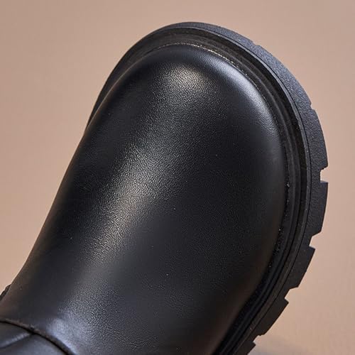 IWIHMIV Girls Riding Boots Mid Calf Leather Booties Non Slip velvety Sole Riding Shoes with Side Zipper High Boots