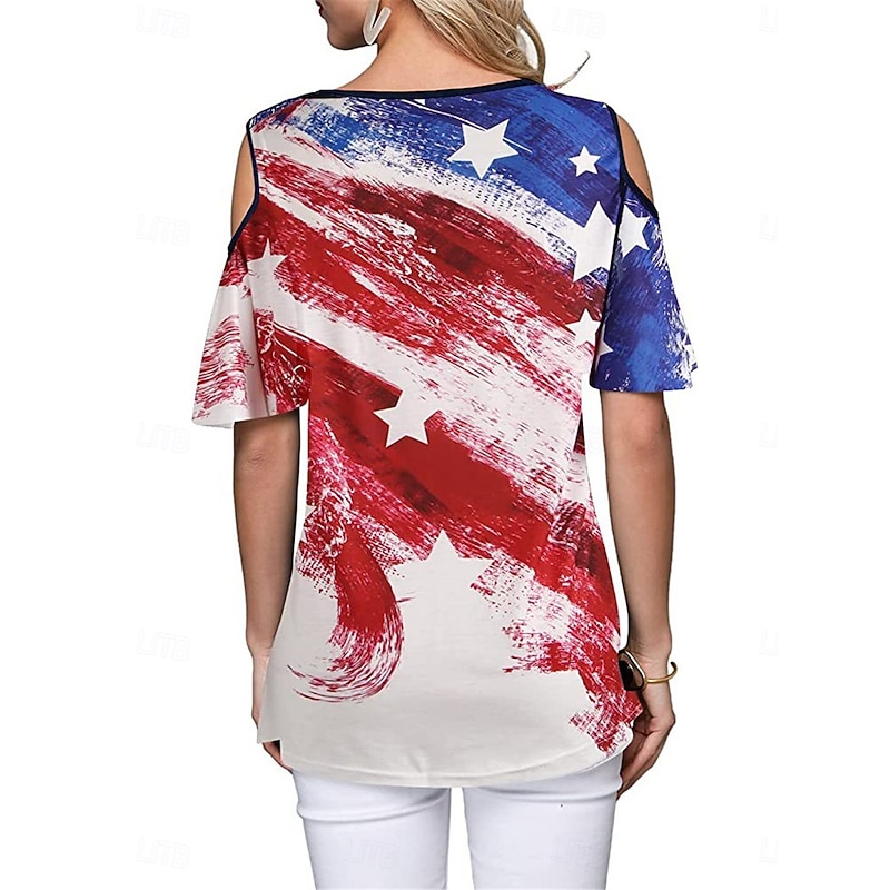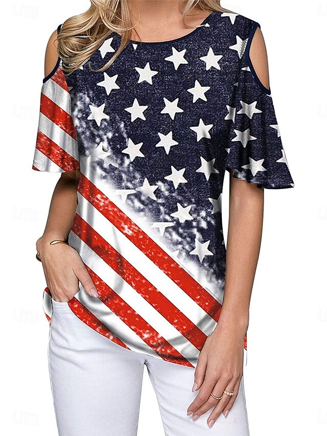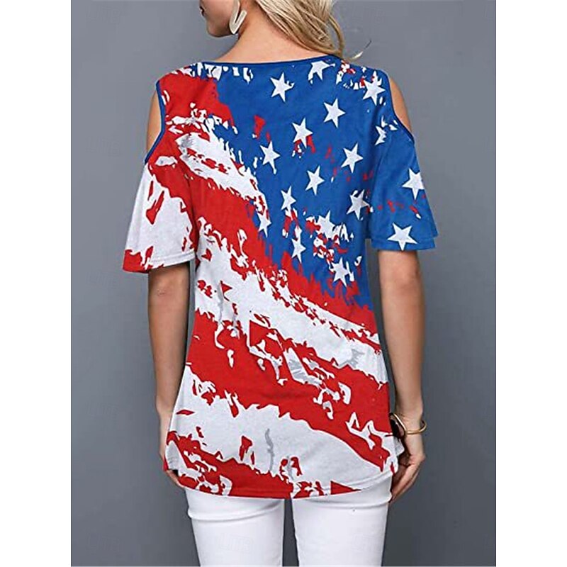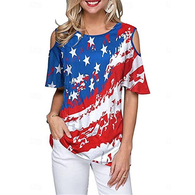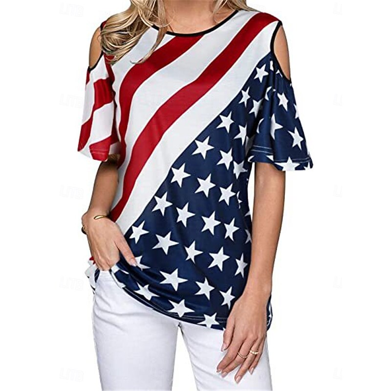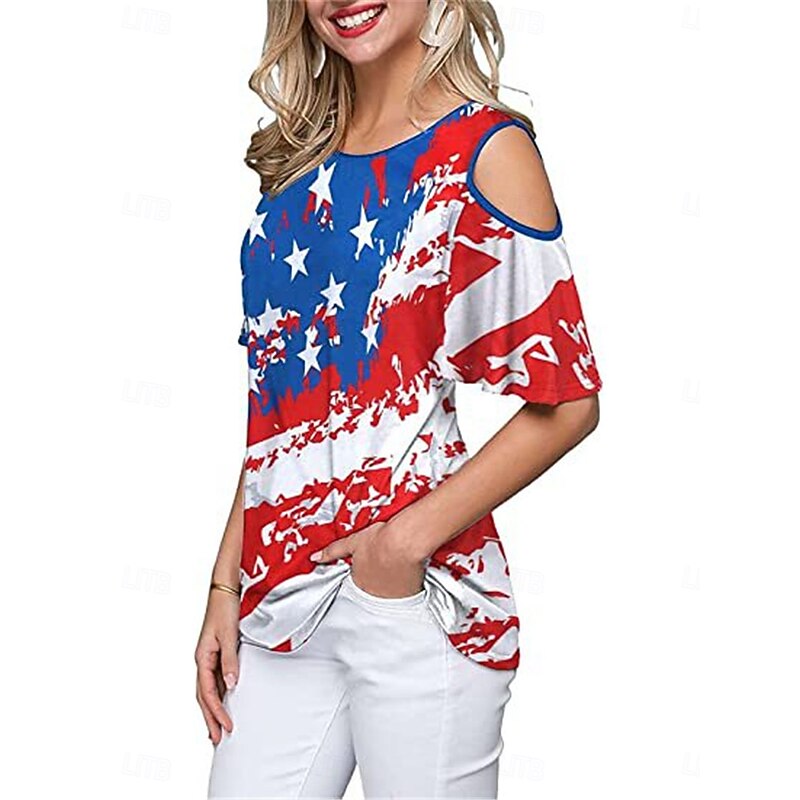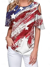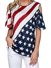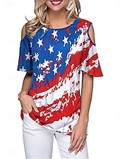 More information about Women's Patriotic T Shirt American Flag Modern Casual Red White And Blue Short Sleeve Crew Neck Regular Tops Daily Weekend Print Wine Red Royal Blue Blue Summer Spring