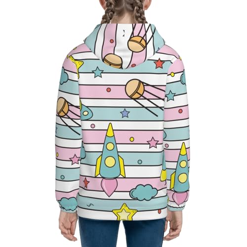 Space Doodle Kid Hoodies Boys Zip Up Sweatshirts Girls Pullover with Pocket