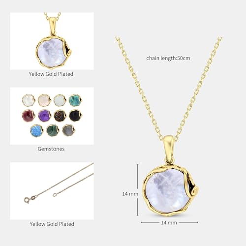Metal type: Yellow-gold-plated-silverChain type: CableGem type: MoonstoneStylish Design: This moonstone necklaces for women features a stunning 14mm round Natural Moonstone gold pendant over 925 sterling silver on a 18 inches chain. Our June birthstone necklace is timeless, perfect gold moonstone jewelry for women collections.Elegant Craftsmanship: Our statement necklace for women offering timeless elegance. Elevate your look with this stunning gold plated jewelry for wedding piece.Symbolic Piece: The luxurious gold plated necklaces for women pair beautifully with a long statement necklace style ideal for both formal events and everyday wear. Perfect for addition to simple wedding jewelry.Versatile Design: Our yellow gold plated necklace offers a perfect blend of tradition and modernity. The statement necklaces for women make this piece stand out piece to wear as wedding jewelry gold accessory for elegant wardrobe.Value for Money: Crafted with precision, this gold plated pendant for women is both stylish and affordable. The gold statement necklace style is perfect for formal gatherings making it a versatile addition to your wedding jewelry collection. Perfect for everyday use. finest materials and excellent craftsmanship ensure long-lasting durability.