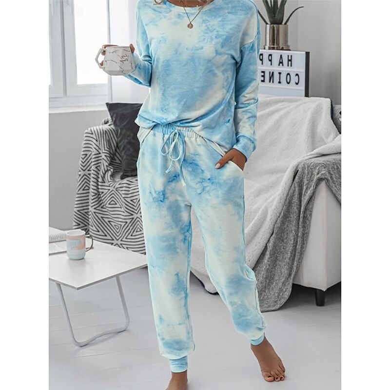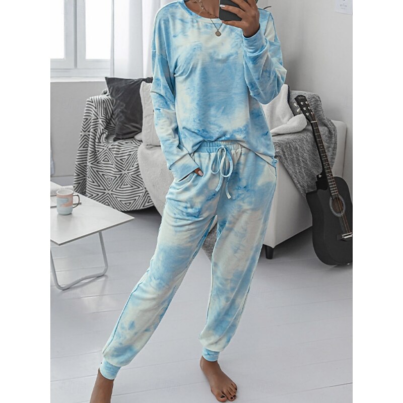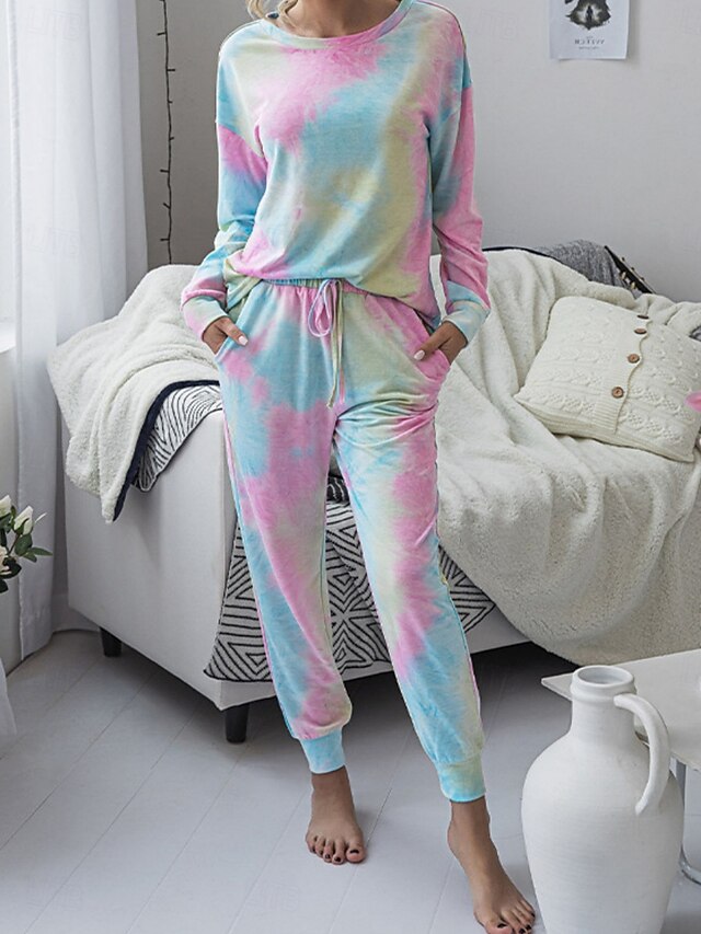 This Women's Pajama Set Casual Comfort Tie Dye Elastic Waist T Shirt Pant Home Daily Long Sleeve Crew Neck Pink Blue Green Rainbow Gray Summer Spring Fall Regular Fit combines elegant design with practical functionality. Every detail has been carefully considered to ensure you get the best possible experience. The exceptional construction means this product will serve you well for years to come.