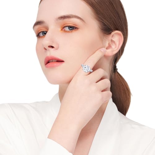 7.5 CT Cubic Zirconia Solitaire Engagement Ring for Women, 925 Sterling Silver & 18K White Gold Plated, Wedding Promise Ring Size 4.5-10
