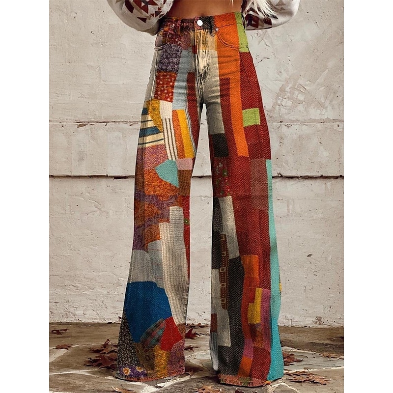 Why Choose Retro Vintage 1970s Groovy Pants Wide Legged Pants Hippie Disco High Waist Psychedelic Faux Jeans Style Fancy Dress Women's Carnival Casual Daily Music Festival Retro Theme Party Adults' Pants?