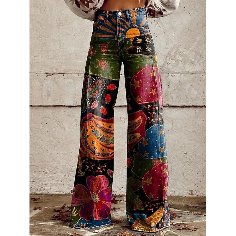 This Retro Vintage 1970s Groovy Pants Wide Legged Pants Hippie Disco High Waist Psychedelic Faux Jeans Style Fancy Dress Women's Carnival Casual Daily Music Festival Retro Theme Party Adults' Pants combines elegant design with practical functionality. Every detail has been carefully considered to ensure you get the finest possible experience. The finest construction means this product will serve you well for years to come.