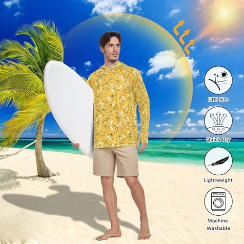 Autumn Flowers Orchid Yellow Sun Shirts Hoodies for Men Long Sleeve Beach Hoodies UPF 50 + Beach Shirt S
