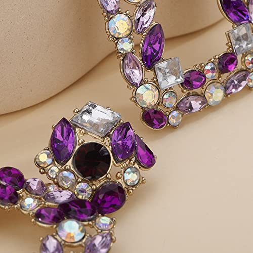 Why Choose Denifery Crystal Square Dangle Statement Earrings Geometric Shaped with Colorful Rhinstone Drop Earrings for Women Bling Stud Earrings for Prom Wedding (Purple)?