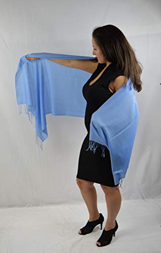 Fabric type: Pashmina Blend - The fabric is comprised of approximately 70% Pashmina Wool and 30% Silk. The combination of Pashmina Wool and Silk makes the fabric versatile, resilient and resonating with colorCare instructions: Dry clean onlyOur Light weight and wispy Summer Pashminas are One (1) Ply thick shawls. These shawls are lightweight, yet wondrously soft and warm and can completely pass through a ring size 10. As done traditionally hundreds of years ago, even today our Pashmina shawls are hand spun on hand looms by expert craftsmen using the same traditional techniquesHand woven in India, this Summer Pashmina shawl, is incredibly soft and silky. Some prefer hand washing these shawls, but we recommend Dry Cleaning. The dimensions of these luxurious, light weight shawls are 78 inches in length and 28 inches in width and the ends are finished with 2”-2.5” knotted tasselsPerfect gift for all occasions and seasons, these luxurious lightweight and wispy shawls are hand loomed in exclusive twill weave. Available in 22 vibrant colors. These great budget wraps are the best value in the entire market. Made from the finest blend of approximately 70% Pashmina Wool and 30% Silk, these wraps are the best versatile accessory that can be used as a wrap, shawl or scarf and can easily be carried anytime, anywhere.These shawls are perfect travel accessory for any casual or formal special evening where you want to look special. These shawls are great for pregnant women also. These shawls can be folded it away when you don’t need it. Unfold it to snuggle up on planes, trains or protection from drafts. Wear these cashmere scarves as a hot accessory to transform an outfit, when day/casual or formal/evening wear.These shawls are soft, delicate and the light weightiness of the fabric makes it an incredibly desirable accessory. Bridal parties and those interested in tantalizing evening wear also favor these gorgeous accessories, as these shawls make excellent wedding gifts for the bridal party. Since the wool and silk fabric is so fine and lightweight, these shawls can be given as anniversary gift, corporate gift, baby gift, mother’s day gift, or anytime a exclusive gift is needed. Perfect for everyday use. finest materials and excellent craftsmanship ensure long-lasting durability.