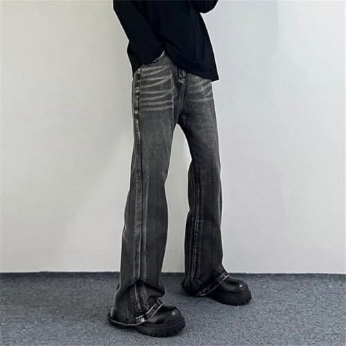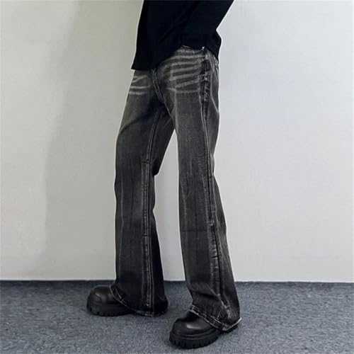 Men Bell Bottom Casual Jeans Retro Lines Denim Pants Baggy Designer Straight Denim Trousers