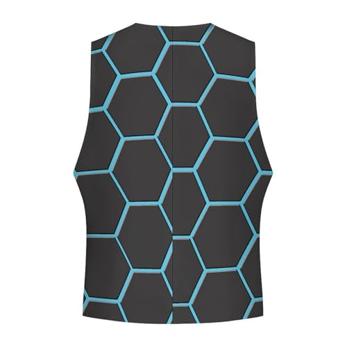 Black And Blue Hexagon Men's Suit Vest Slim Fit V-Ncek Waistcoat Business Casual Vest