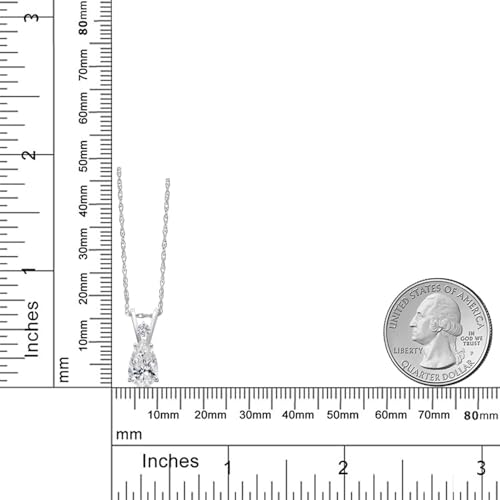 Item display length: 12 millimetersMaterial: Gemstone, White GoldMetal type: Solid white goldClasp type: Spring RingChain type: RopeMetal weight: 0.4 gCustomizable Gemstone Brilliance: This necklace features a 7X5MM pear-shaped gemstone birthstone and a 2MM round lab-grown diamond, offering personalization with your birthstone of choice. The elegant combination of shapes and sparkle makes this pendant a meaningful and luxurious gift for birthdays, anniversaries, or special occasions.Brilliant Lab Grown Diamond Accents: Accented by a 2MM round lab-grown diamond, this necklace offers an eco-friendly and ethical choice without compromising on sparkle. The lab-grown diamond perfectly complements the pear-shaped gemstone, adding a touch of elegance and sustainability to this luxurious design.Crafted in Solid 14K White Gold: Made with high-quality 14K solid white gold, the pendant and 18-inch chain offer lasting durability and a timeless, polished appearance. The sleek white gold setting enhances the brilliance of the gemstones, ensuring that this piece remains a stunning addition to any jewelry collection for years to come.Hypoallergenic & Comfortable Fit: Designed with hypoallergenic 14K white gold, this necklace is safe for sensitive skin, ensuring irritation-free, all-day wear. The 18-inch chain provides a perfect length for the pendant to rest gracefully on the neckline, making it ideal for daily wear or special events.USA Based Company and Lifetime Warranty: As a USA-based company, we prioritize quality, craftsmanship, and customer satisfaction. Our commitment to excellence ensures that you receive a meticulously crafted product that meets the highest standards of design and quality. Our jewelry passes extensive quality checkpoints before being shipped to you. Enjoy prompt and professional support from our world-class customer service team, ensuring your satisfaction. Perfect for everyday use. finest materials and excellent craftsmanship ensure long-lasting durability.