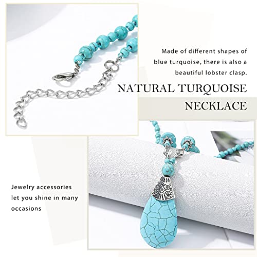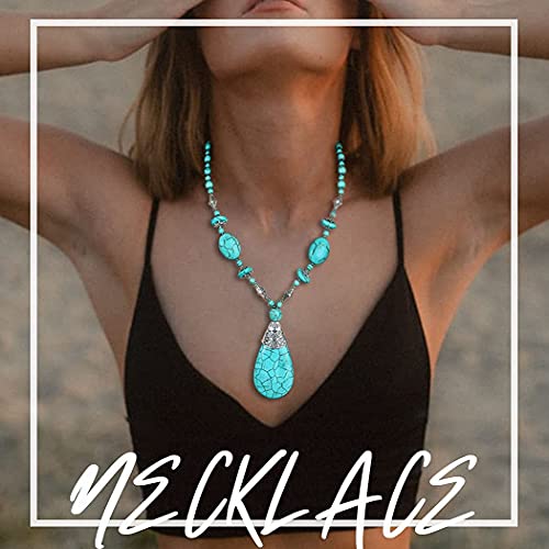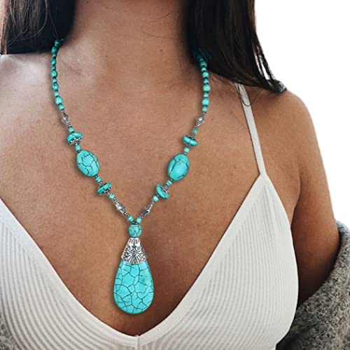 Material: StoneMetal type: SilverClasp type: LobsterChain type: CableGem type: TurquoiseBohe necklace for women made of different shapes of blue turquoise, and a pretty lobster clasp. Turquoise is a natural stone and each stone has different cracks and shapes that make them exclusive.Long necklaces lenght is 45+5cm/17.7+1.9in, exquisite and unique. Once you put it on, it will make you unforgettable and is a must-have accessory for every woman.Turquoise pendant jewelry accessories can match different styles such as bohemian dress, Bikini, t-shirt or other outfits depending on your preference, elegant sequin necklace makes you shine in the crowd,and will give you the look of a pretty lady.Teardrop necklace makes you a charming sparkle in many occasions.Absolutely a meaningful great gift to express your love for your mom, wife, girlfriend, lover, daughter, sisters, female friends and family on birthday, anniversary, wedding, graduation, Valentine's Day, Mother's Day, Thanksgiving Day for any Special Holidays.Our aim is to give every customer-pleasant a shopping experience. If you have any questions, please feel free to contact us. We will answer within 24 hours. Perfect for everyday use. finest materials and excellent craftsmanship ensure long-lasting durability.