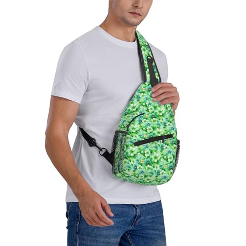 Fabric type: PolyesterOuter material: PolyesterClosure type: ZipperSize: This print sling bag is 13.3 x 3.5 x 7.5 inMaterial: Our crossbody bag is made from polyester composite fabric with wrinkle resistanceStyle: Minimalist design with all-over print adds up-to-date flair to your casual lookComfort : Our bag is designed for ultimate comfort.The shoulder strap and back are made from breathable materials that keep you feeling fresh and comfy whether you're traveling, hiking, or just on the moveAmple Storage Space: Our casual shoulder backpack with a zippered main pocket can effectively store your magazine, clothes, camera, sunglasses, snacks and tissues; A patch inside pocket is big enough to hold your small items such as cellphone, purse, keys, cash, wallets and lip balm; 2 mesh pockets on each side can put your water bottles or umbrellas, more easy to reach Perfect for everyday use. finest materials and excellent craftsmanship ensure long-lasting durability.