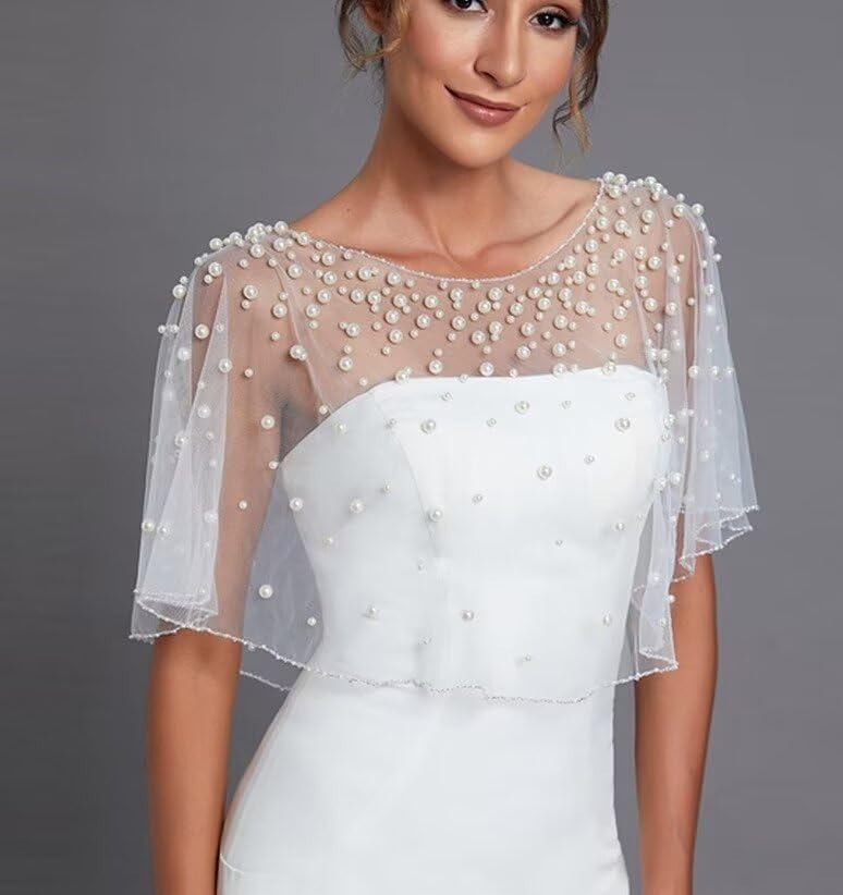 Women Pearls Wedding Capes Shawl Wrap Shrug Bridal Dress Jackets Flapper Bolero Cover Up 4