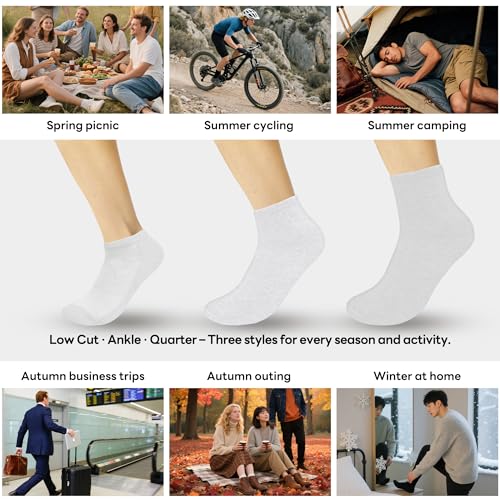 • LOW CUT, ANKLE & QUARTER OPTIONS TO FIT YOUR NEEDS: Choose from three comfortable styles – Low Cut, Ankle, and Quarter – to suit different footwear or activity types. Ideal for use in gyms, hotels, during travel, or as emergency socks in unpredictable situations. Lightweight and space-saving, they’re a must-have for modern life.