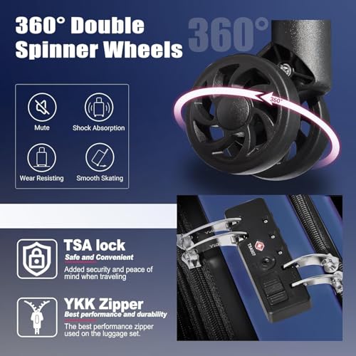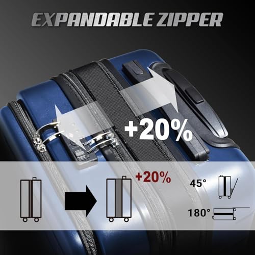 SmileLine 20 inch Carry-On Luggage Set with TSA Lock, Lightweight Hardside Suitcase with Spinner Wheels, Expandable Checked Luggage with Front Pocket, Bonus Travel Backpack & Makeup Bag, Navy Blue