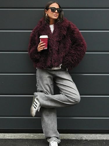 Yimoon Womens Faux Fur Coat Cropped Fluffy Fur Jacket Long Sleeve Lapel Collar Winter Fuzzy Shaggy Short Coat