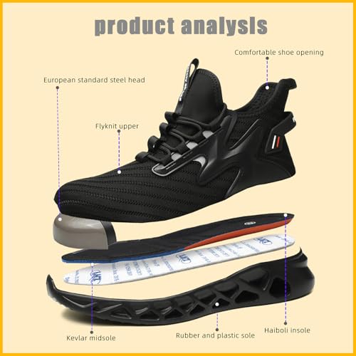 • [Cushioned Sole & Breathable Upper]You will feel very soft and light.when you wear these safety shoes.And the breathable fabric will keep your feet dry