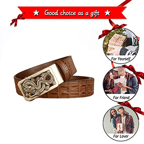 Fabric type: 100% Unknown【Exotic Crocodile/Alligator Print】Embossed leather strap features realistic reptile texture, adding luxurious and rugged appeal to formal or casual outfits.【Handmade Dragon Hollow Buckle】Intricate hollow dragon design on the automatic ratchet buckle creates a bold, mythical statement for eye-catching style.【Smooth Ratchet Mechanism】One-slide auto-locking buckle with side release lever ensures effortless fastening and adjustment for all-day comfort.【Premium Craftsmanship】Hand-cut and embossed for durability, the belt offers a vintage patina over time, blending artisanal quality with up-to-date functionality.【Versatile Gift Option】Adjustable trim-to-fit design makes it a practical gift for any occasion, suitable for suits, jeans, or western wear to elevate any look. Perfect for everyday use. supreme materials and excellent craftsmanship ensure long-lasting durability.