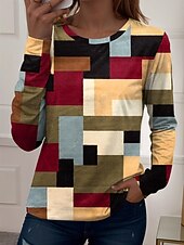 More information about Women's T shirt Crew Neck Long Sleeve Tunic Graphic Geometric Vintage Stylish Modern Regular Tops Daily Weekend Print Red Blue Brown Fall