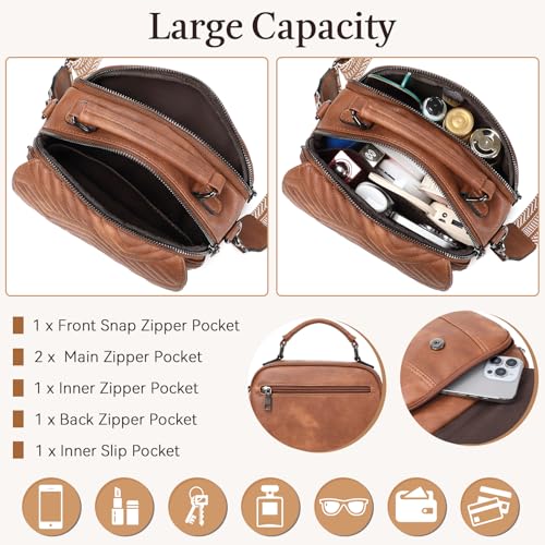OPAGE Crossbody Bags for Women, Quilted Vegan Leather Women Crossbody Purses Shoulder Handbag with Wide Strap & Top Handle