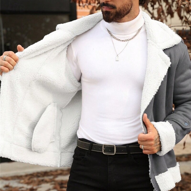 This Men's Winter Jacket Fleece Jacket Sherpa Jacket Vacation Daily Windproof Warm Pocket Fall Winter Plain Fashion timeless Lapel Regular Faux Leather Gray Jacket combines elegant design with practical functionality. Every detail has been carefully considered to ensure you get the best possible experience. The first-class construction means this product will serve you well for years to come.