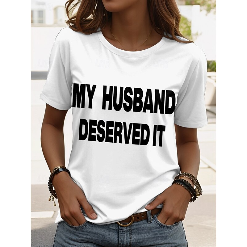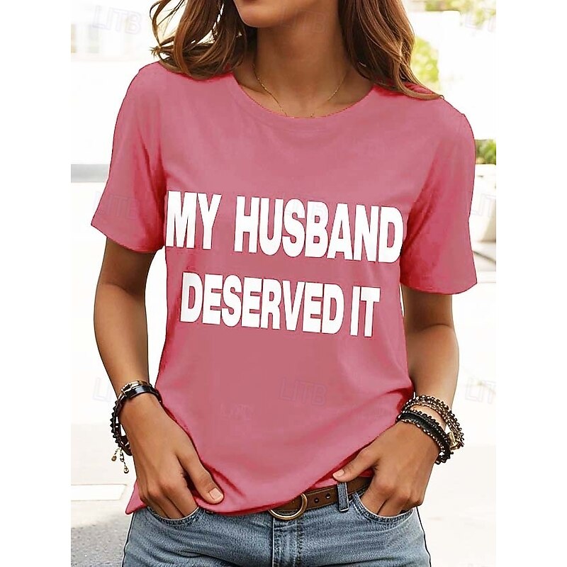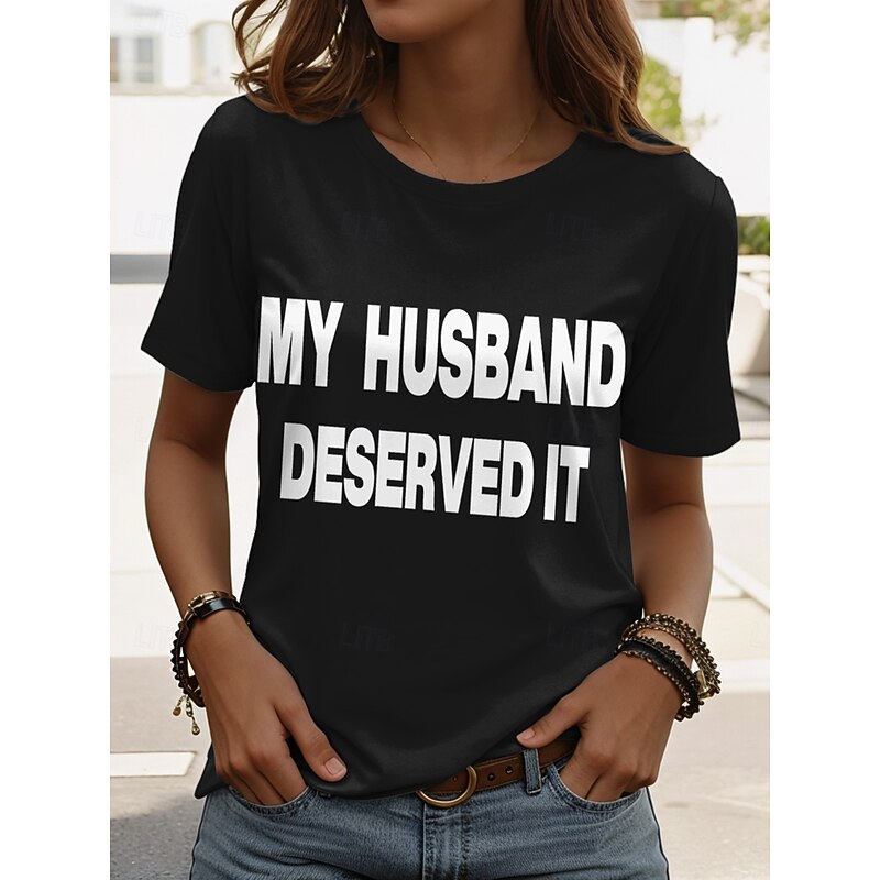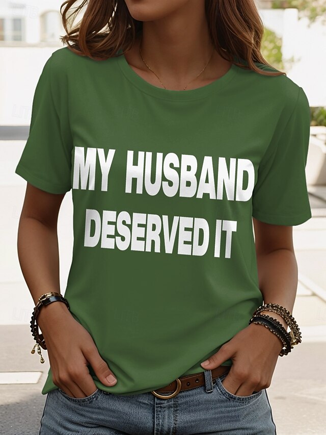 More information about Women's T Shirt Graphic Letter Vintage Stylish Classic Short Sleeve Crew Neck Regular Tops Daily Weekend Print Black White Pink Army Green Red Summer Spring Ridicule Husband