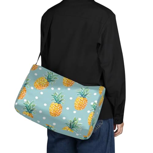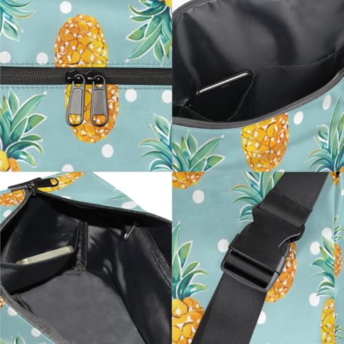Leather Travel Duffle Bag for Women Men, Polka Dots Pineapple Small Sports Gym Bag Weekender Overnight Bags Underseat Carry on Luggage Bags for Airplanes, Personal Item Travel Bag,B-850