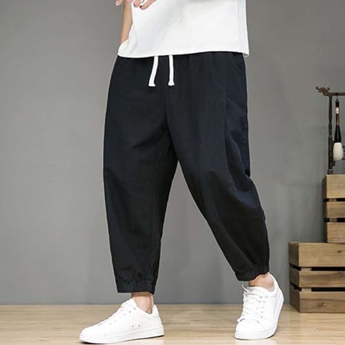 Mens Loose Straight Cotton Summer Casual Pants Mens Breathable Pants Mens Elastic Pants
