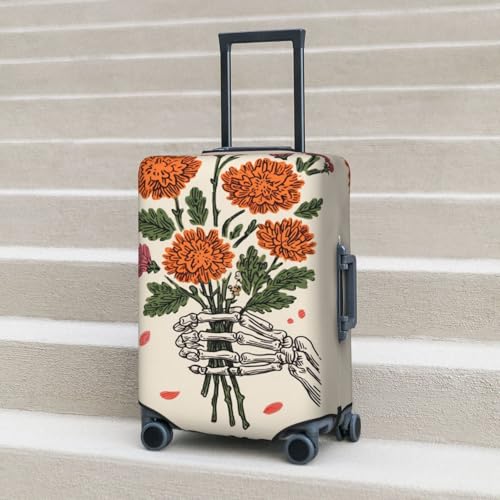Skeleton Holding Flowers For You Elastic Travel Luggage Covers Dustproof Scratch-Resistant Suitcase Protector Fit 22-24 Inch