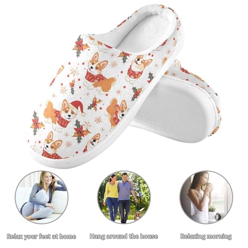 Fuzzy Memory Foam Slippers for Women/Men Christmas Corgi Pattern Fluffy Winter House Shoes Indoor and Outdoor