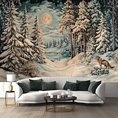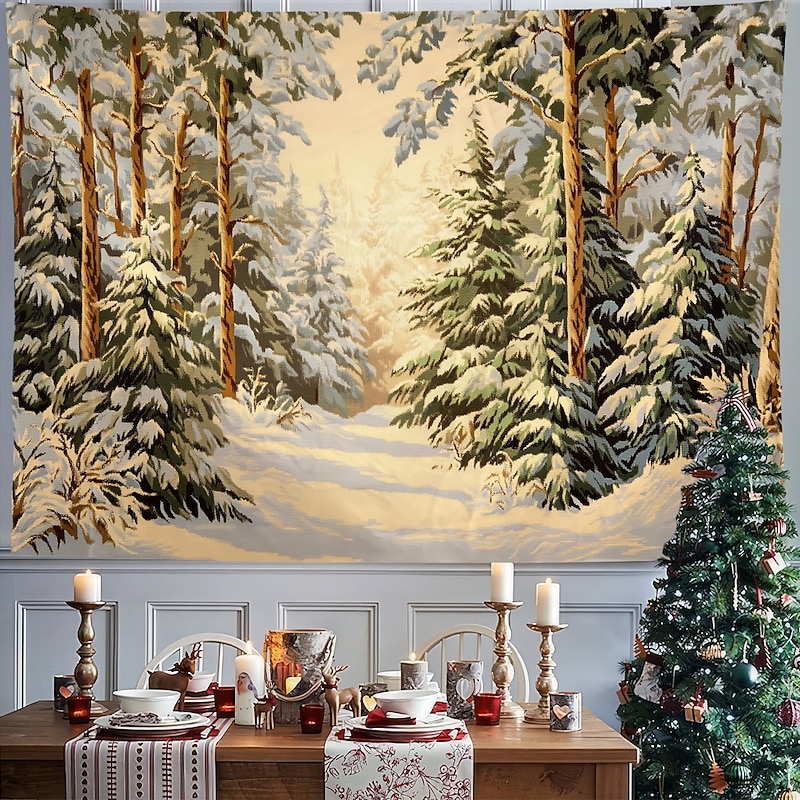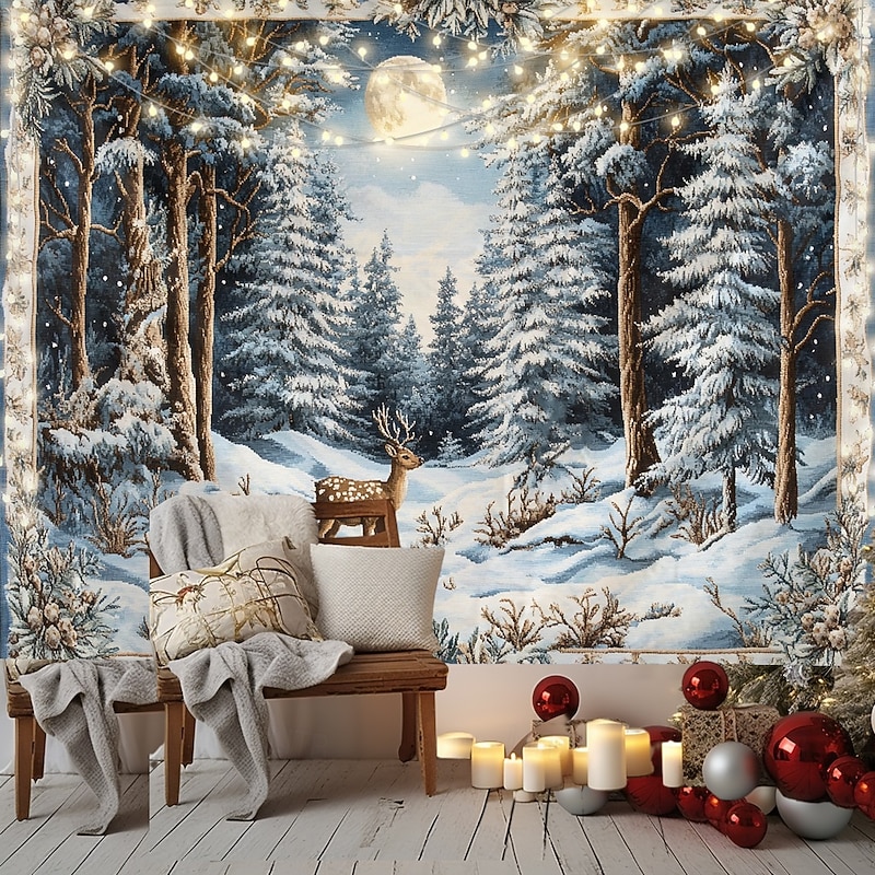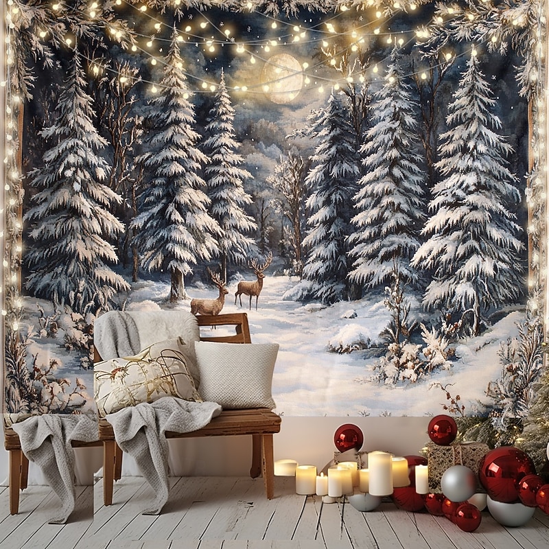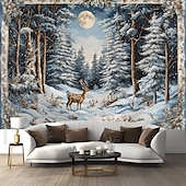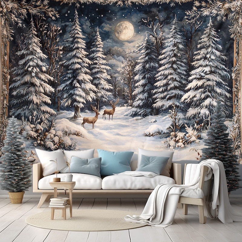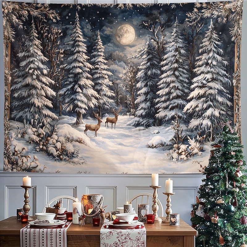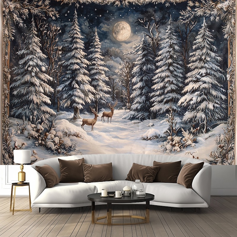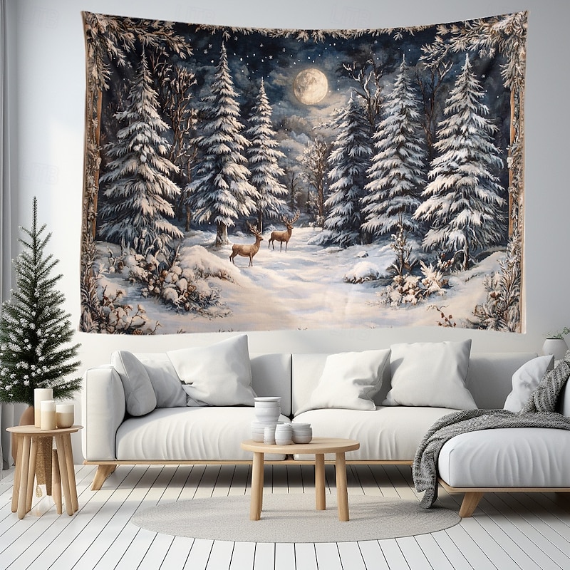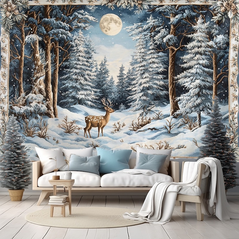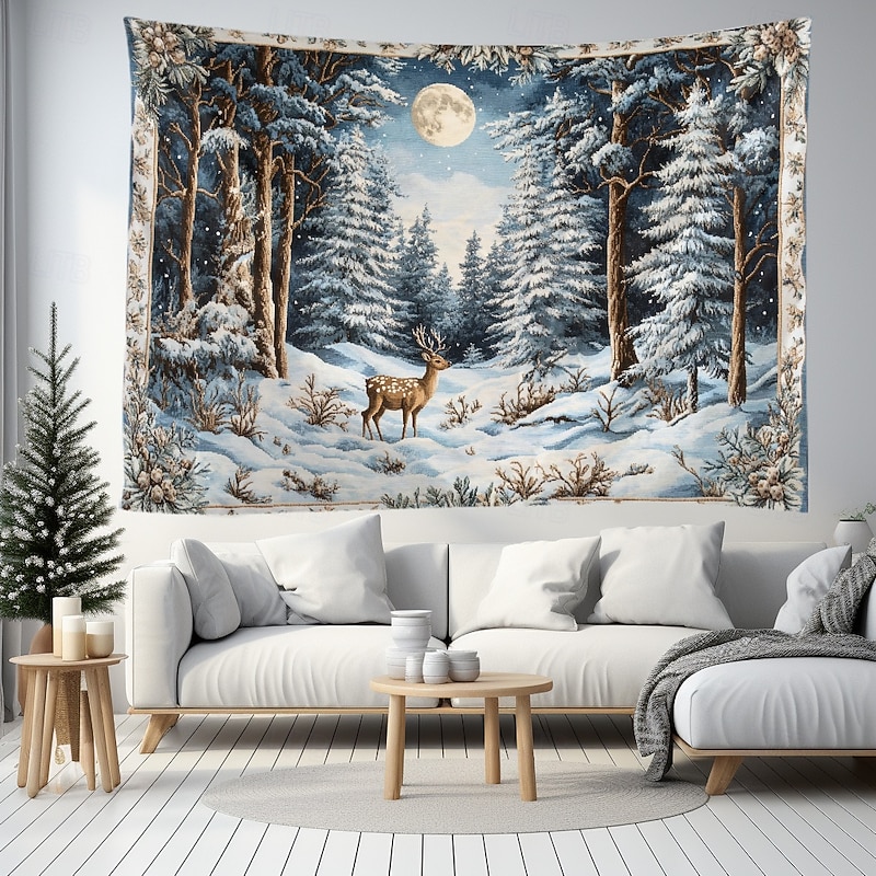 Hanging Tapestry Snow Reindeer Wall Art Large Tapestry Mural Decor Photograph Backdrop Blanket Curtain Home Bedroom Living Room Decoration