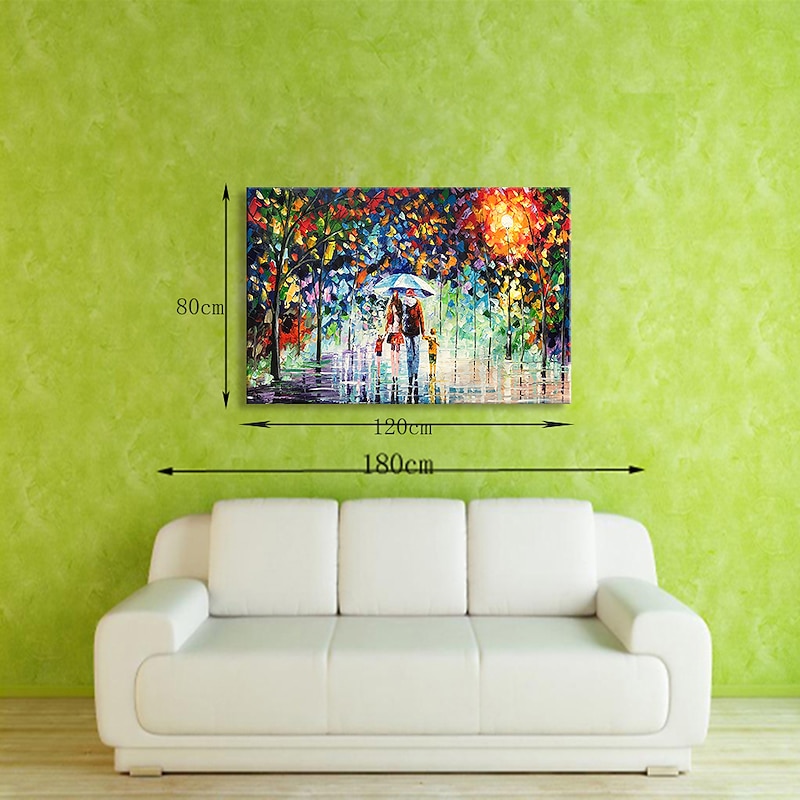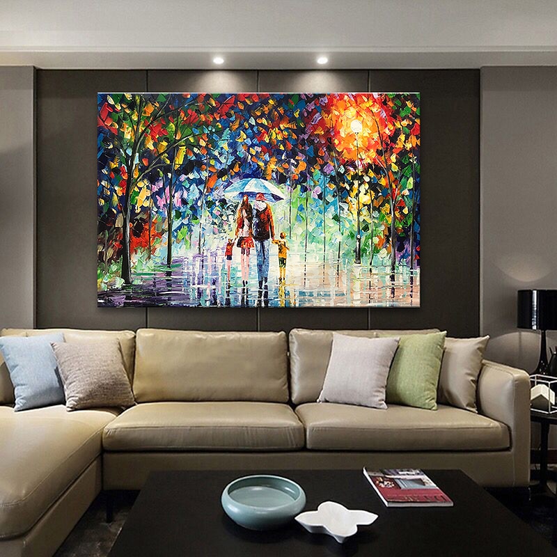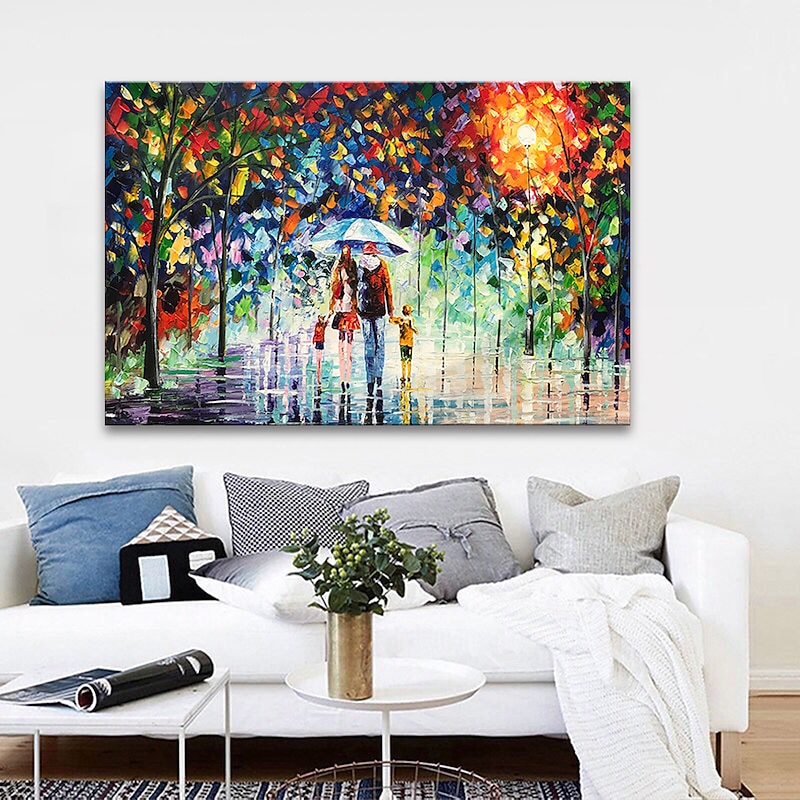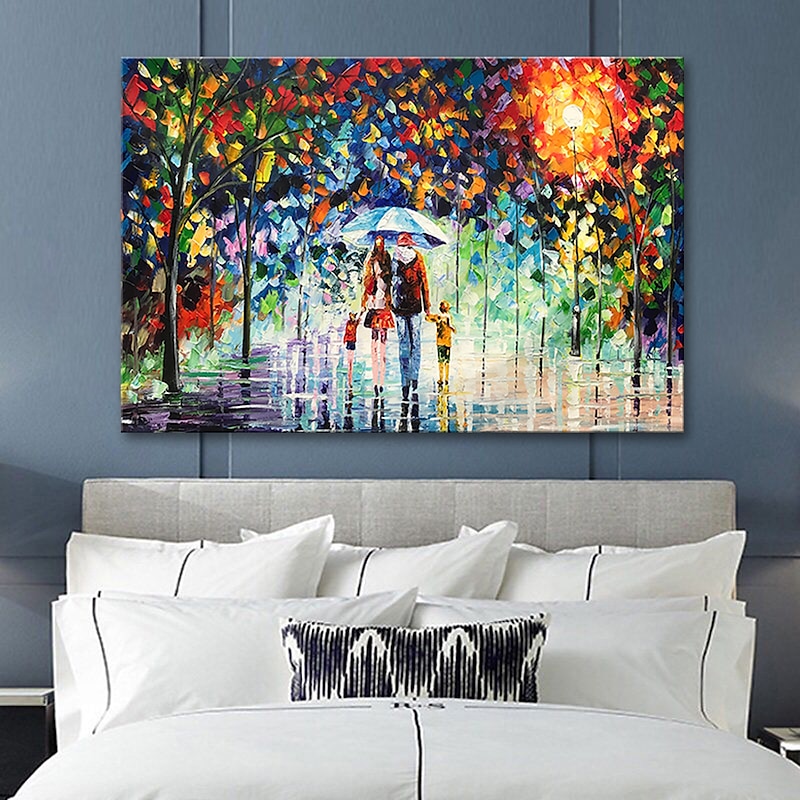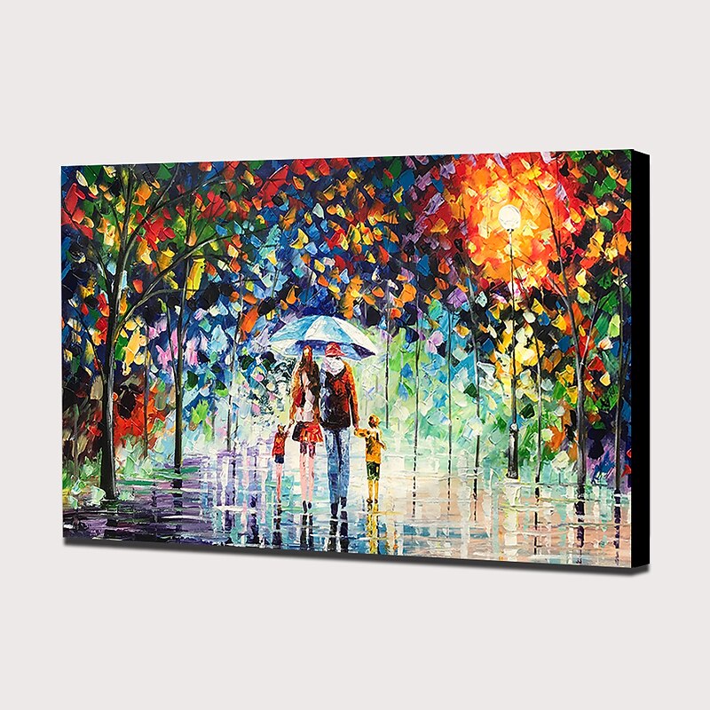 Oil Painting 100% Handmade Hand Painted Wall Art On Canvas A Family Of Four Holds An Umbrella Abstract Landscape Vintage Traditional Home Decoration Decor Rolled Canvas No Frame Unstretched